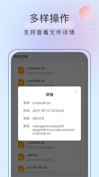 易用上手、适合各类人群的文件管理应用,简约悦目的界面,给您带来非常友好的使用体验,让您更安心~