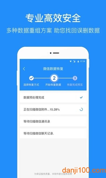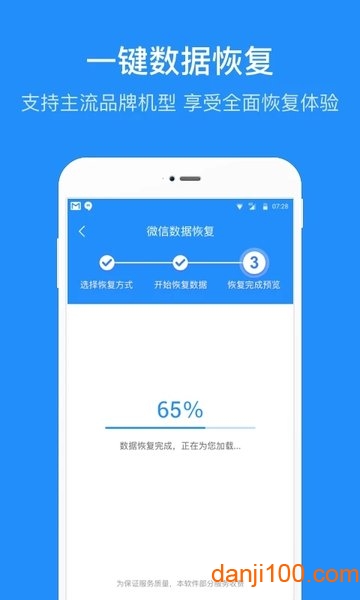 数据恢复管理器支持恢复微信聊天记录,也支持恢复手机中各种删除的数据。无需注册,免费扫描,深度恢复,快速恢复微信聊天记录!一键恢复数据、照片、视频、附件等。技术工程师在线支持,7x24小时恢复支持。快速扫描模式,安全恢复数据,不损伤手机。兼容各种模式,支持各种版本的安卓手机。