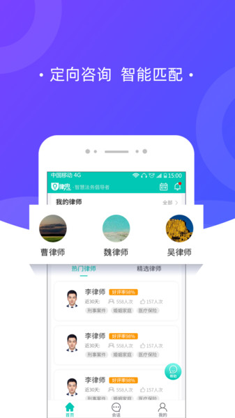 匹配咨询:根据问题类别,系统智能匹配相关领域专业律师,提供文字、电话、等咨询方式