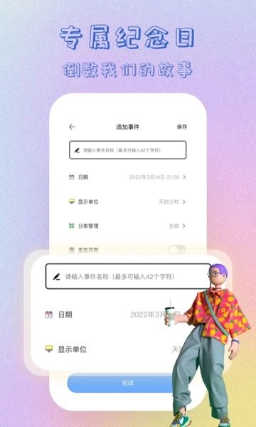 365倒计时是一个帮你记录生活中重要日子的好帮手,让你不再错过和TA的任何纪念日。不管是TA的生日,在一起的纪念日,各种节日,考试的倒数计时日,还信用卡的还贷日,还是在一起的整数纪念日......都帮你记录和提醒哦~