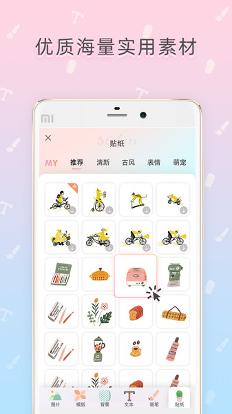 3、自定义素材,背景可自定义颜色,支持变色贴纸,真正满足个性化服务