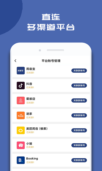 2.直连多渠道平台,包含爱彼迎、途家、小猪、榛果、 Booking、抖音、贝壳、携程国际等