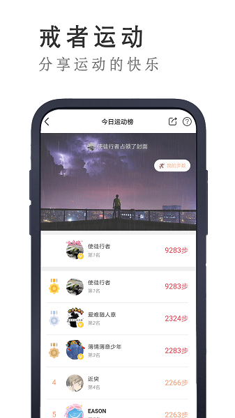 【戒者运动】记录每日运动步数,期待有你独占榜首