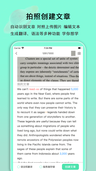 可拍照上传英文,查询词典,也可以用语法分析和翻译,方便学习更多的内容。