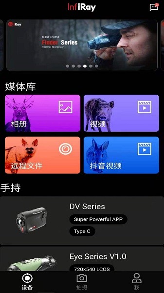 能够连接InfiRay带WiFi的户外产品,在App里预览红外设备的实时视频,并拍照,录像,分享,访问远程设备FTP文件,更新设备固件,设置参数。能够获得更多的产品分类信息,产品推荐和动态。