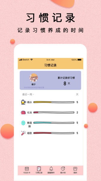 1、自动记录习惯养成的时间,可以在该平台中养成一个好习惯。