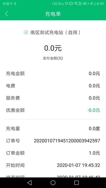 统计充电账单,在账单上面能够查看充电时长、充电电费和充电服务费、订单编号等详细信息;