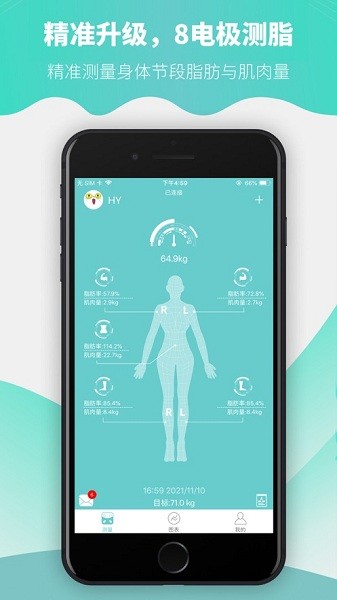 设备管理,一个软件可以与多个设备产生连接,不管你再哪个体脂秤上测量,都可以及时的给出身体各项测量指标的反馈。
