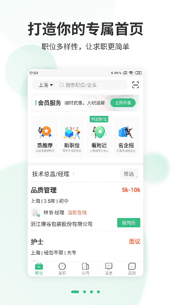免费下载 大小:45.4M 下载:1次 上海直聘网 V5.2 安卓版 支 持:安卓 分 类:安卓软件 大 小:45.4M 版本号:v5.2 安卓版 发 布:2022-11-29 10:40:56 手机扫码免费下载 #上海直聘网 V5.2 安卓版简介 上海直聘app是您在上海找工作的必备手机app,它内置了各行各业的工作等你来挑选,蓝领白领职位一应俱全,支持一键聊天,快速挑选老板,快来下载试试吧!上海直聘网简介上海直聘,最具知名度的上海招聘APP。致力于提供上海人才招聘服务,每日更新上万个上海企业招聘信息。上海直聘客户端功能即时聊天最快8小时到岗智能匹配快速筛选合适职位城市切换热门城市随意切换推荐理由在这里不再错过找到好工作的机会在这里不再错过招聘优秀人才的机会在这里求职招聘就是这么简单用户点评朋友推荐的,非常好用呢软件不错,有我喜欢的公司 #上海直聘网 V5.2 安卓版截图