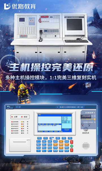 优路教育完全自主研发、行业领先的消防设施操作学习平台。app实现三维实操、交互动画、仿真考核三大功能。两种主机学练一体、核心模拟实验全覆盖、为您提供科学的学习方法。让您看的更准、学的更快、练得及时、随时随地想学就学,让您轻松实操无烦恼。