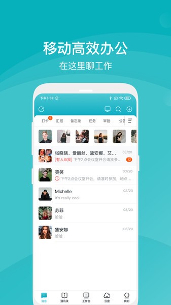 专门针对各大企业打造的在线办公软件,这个APP可以大大的提高,所有工作人员的工作效率并且还可以进行公司内部交流。