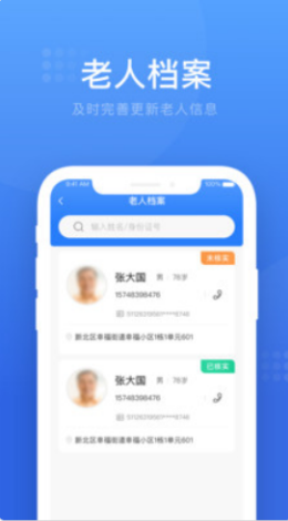·操作方便,轻松管控,通过导入了完善的老人档案数据信息资料,让用户可以轻松的看到所有老人用户的需求和变化,及时回访,提高服务质量。