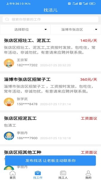 免费发布招工找活!
