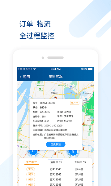 3. 实时监控订单任务和车辆实况,定位跟踪车辆异常,保证物流信息透明,准确,时效。