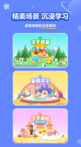 1.软件通过开发可爱的画风以及场景,吸引孩子的注意力并且来进行综合的学习和理解,超多汉字内容,来进行轻松的提高和认字,不断提高进步。
