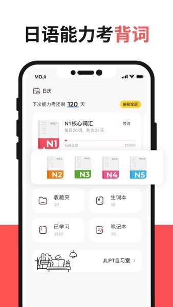 日语能力考背单词MOJiTest全新体验为你而来,内置海量的词库任您选择,支持设定按天或者按量的学习计划,历年的JLPT真题试卷为您提供,快来下载学习吧!