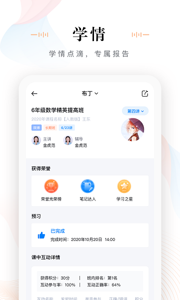 是支持魔法校双师、AI和面授课堂的多功能教师移动端,满足面授老师以及辅导老师通过手机随时随地查看课表,备课、批改作业及查看班级课堂数据的需求,帮助合作机构及时掌握课中班级学习动态,更有针对性地实施课前课后教学服务。