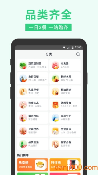 新鲜蔬菜、水果、肉禽蛋、米面油、水产海鲜,方便快捷,解决一日三餐所需食材!