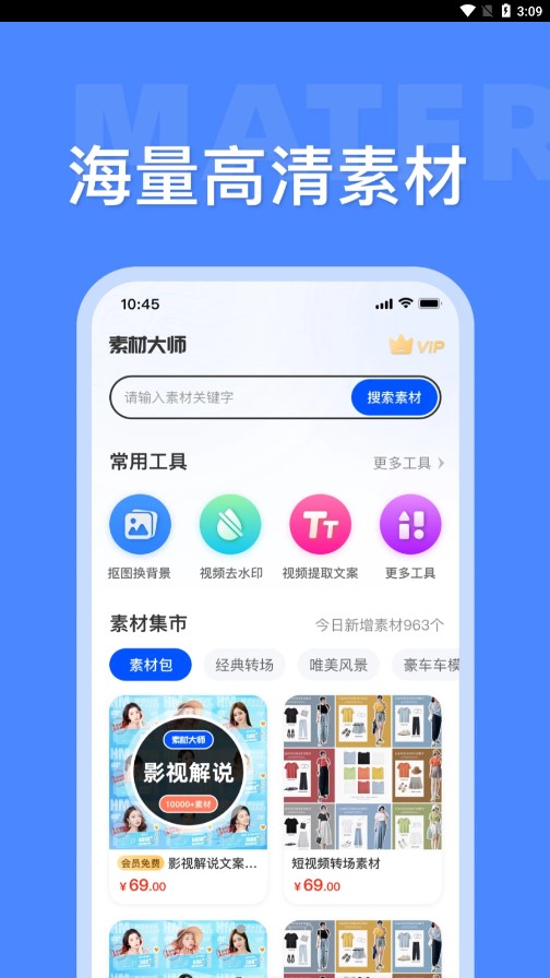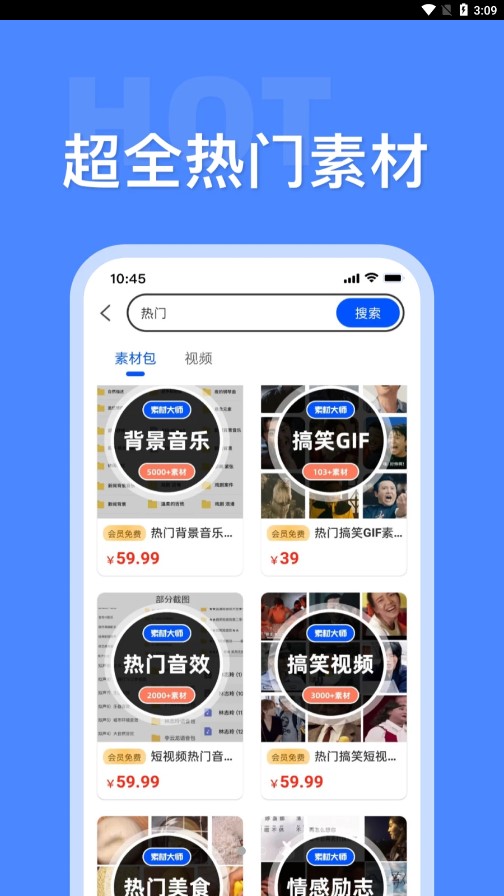 素材大师app,一款拥有大量素材的创作平台,各种创作工具尽在其中,完全免费,支持图片编辑、视频编辑去水印等功能,为用户带来更便捷的创作服务,让视频、图片编辑更轻松。