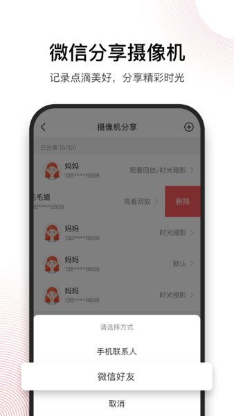 智能家居摄像头,为用户提供实时视频、远程关爱、即时分享、云端存储等视频应用服务。您可以轻松查看家里、商铺、办公室等场所的实时视频、云端录像;您可以即时接收您所关注场所的异常事件报警通知,采取安全防护措施;您将不再错过孩子及萌宠的精彩瞬间;您可以与您最在意的人分享精彩生活。