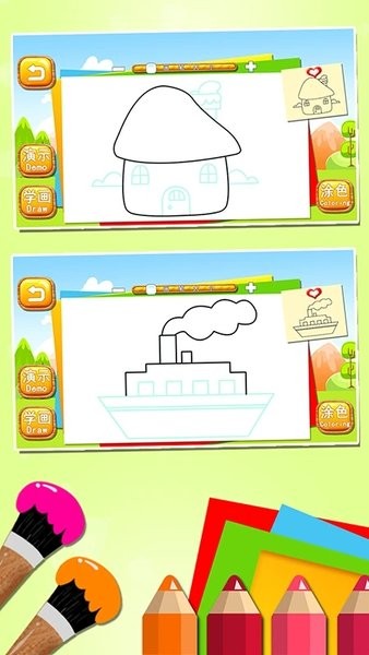 儿童涂鸦涂色简笔画出自欢乐盒子倾心制作的一款幼儿早教启蒙教育类软件,是孩子学习基础绘画的得力助手。专注寓教于乐,让孩子在欢乐的巴士上茁壮成长!