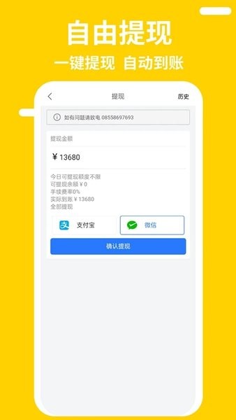 一键提现 自动到账