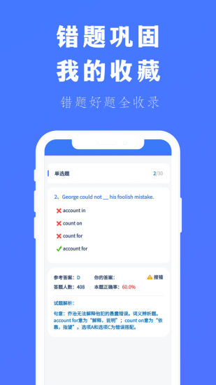 提供我的错题、我的收藏,按照考点、考卷进行分类,强化巩固查漏补缺十分方便。还有更多刷题功能:模考大赛、刷题计划、题型刷题、智能刷题等。