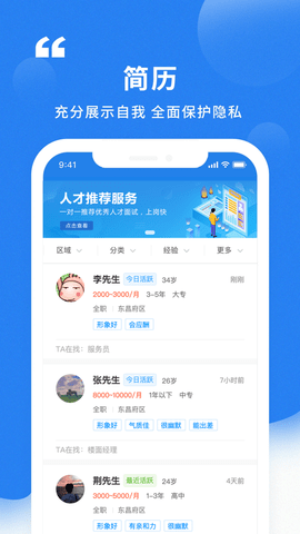 3、这里有丰富的简历,充分就可以展示自我,全面保护隐私。