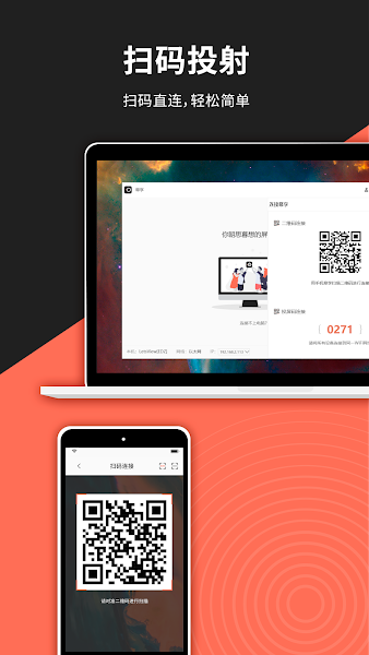 5.三种投屏方式任意选择,公司、学校等特殊区域网络环境下,支持投屏码及扫码跨网段连接。