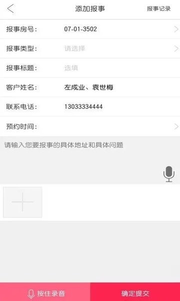 一键预约保洁服务,提交报事报修申请信息