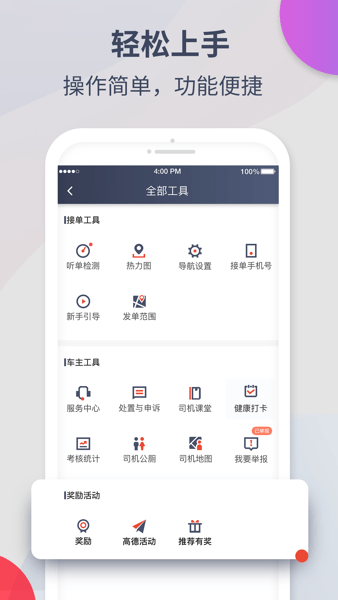 为鹰明司机提供的专业智能化接单APP,适用于网约车、出租车司机。快速响应乘客出行需求,智能推荐订单热点区域,实时导航通畅线路,高效完成乘客行程订单。抢单、派单、顺路多种听单模式设置,科学调度、实时智能提示热点区域,降低空载提升运营效率。平台为司机提供完善的培训和人性化的服务,帮助司机提升服务水平。