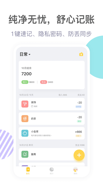 嗨~我是记账鸭,记账我是专一的,对你我是真心的,全身心专注为你记账,一切理财广告、社交干扰都被我拒之门外啦!