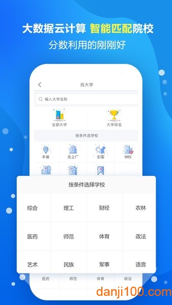 根据考生分数以及个人情况,智能匹配高校 ,全面推荐冲刺院校、适中院校、保底院校;