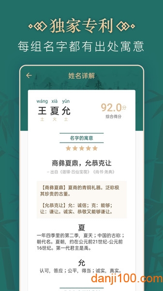 2.名字出处于国学经典古文成语唐诗宋词等,提倡科学起名,寓意起名,弘扬文化起名。