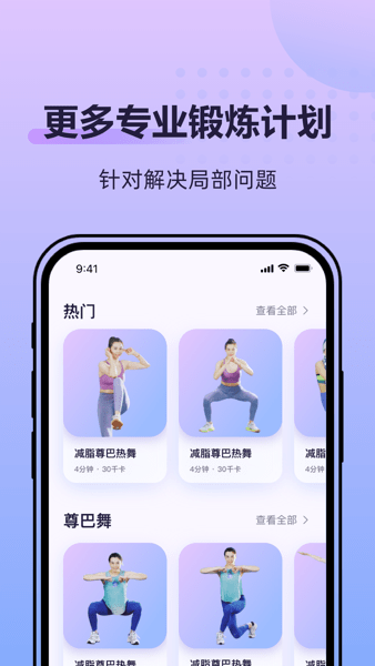 2、【暴汗燃脂尊巴舞计划】跑步减肥难坚持?不如试试燃脂尊巴舞,零基础小白和健身达人都能可以跳!在欢快的音乐中感受跳舞的乐趣。全身、局部都能练,找准目标,帮您快速甩掉肥油!