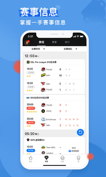 5e对战平台app是专为大家提供很多赛事资讯的,它主要是支持csgo这个游戏,在上面还可以清楚多的看到战绩详情,它更是有社区交流圈子,供广大玩家们畅所欲言。