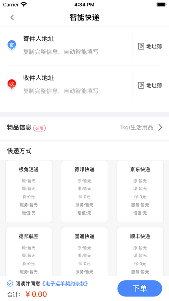 3.管理收寄件人地址,智能识别地址,1分钟快速下单!
