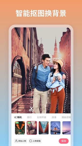 Al智能可以自动识别并抠出照片中的人物,让您轻松换背景图。