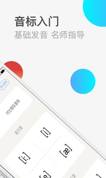 音标是学习英语的第一步,扎实的音标功底是学好英语的关键。本应用让你零基础由浅入深学音标,并且通过语音评测技术帮助矫正你的发音。