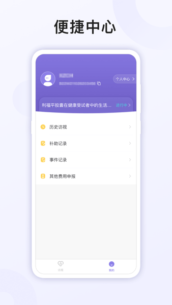 易陪伴之家安卓版致力于更高效的临床试验平台,为您提供历史的访视记录、补助记录、事件记录信息,还有其他费用的申报渠道,快来下载体验吧!
