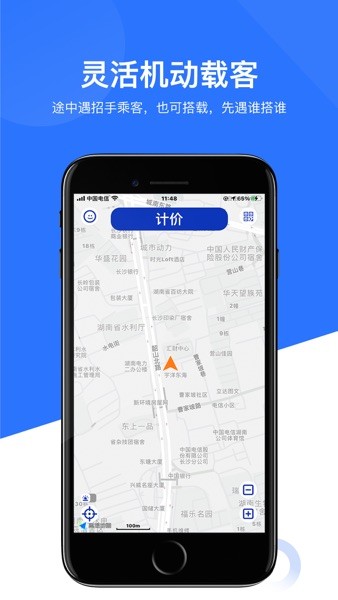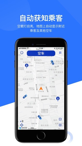 空载灯启亮,地图上自动显示附近乘客及其他空车