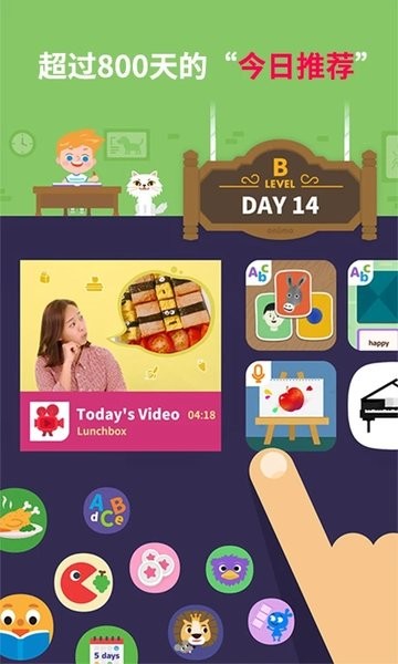 全面:产品为孩子提供超过200本有趣绘本、多个英语视频,以及超过700天学习内容,帮助孩子全面发展听说读写能力!