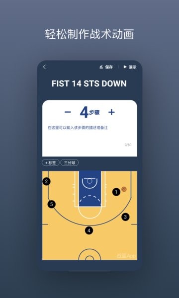 帮助你轻松创建理解篮球战术动画,快速查看已保存战术,内置大量战术,按标签高效分类战术,支持查看动画演示,自由战术板更随性。