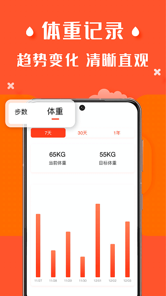 【健身数据】健身数据时刻关注自身运动健康,行走步数将以清晰的图标呈现,您可以清晰地查看每日、每周甚至是年度的步数记录,做好运动记录;包括体重数据,做好体重记录减肥记录,清晰了解体重变化,陪伴你的瘦身旅程。