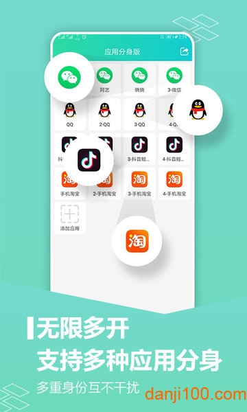 应用分身软件免费版兼容手机各大热门软件app,除了微信、qq,还支持58同城、抖音、钉钉等应用的无限多开,还可以运行王者荣耀之类的游戏多开哦,只要您的手机内存足够充足,理论上就可以无限多开!