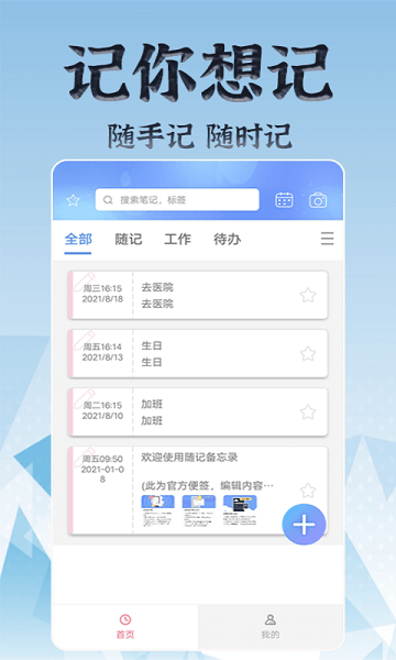 功能笔记软件,可以帮助用户随时记录各种事务。