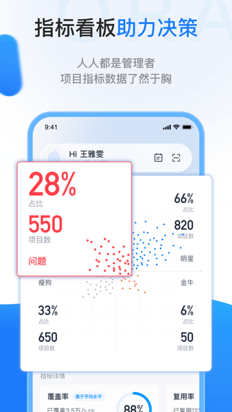 各类项目指标数据了然于胸,让数据指导日常工作,人人成为管理者。
