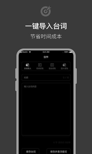 拍摄视频的提词神器,不仅能够一键导入台词,还可以根据用户需求自定义提词悬浮窗的设置,为用户解决了拍视频忘词的烦恼,提高视频录制的成功率,节省时间和精力。本产品功能强大,操作简单,能够让手机秒变滚动提词器,适用于多种场景,如vlog的拍摄、主播直播、街头采访等,减轻用户拍摄压力。