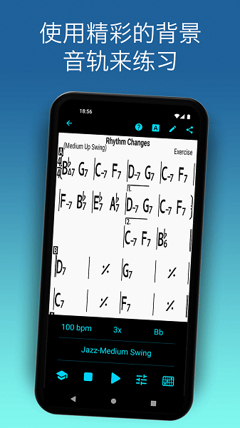 免费版iReal Pro应用程序包含3种伴奏风格和50首歌曲合集.