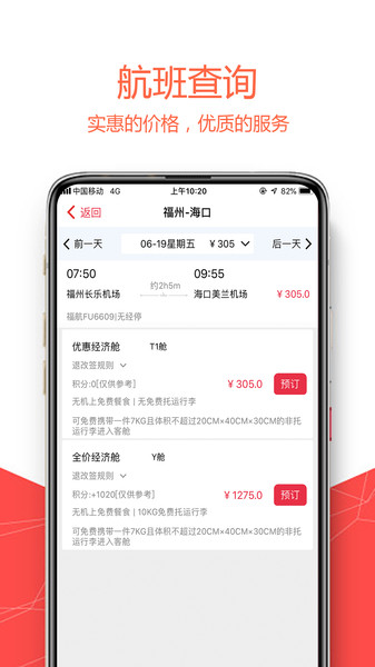 福州航空公司官方app支持在线办理各类航班服务,例如预订行程、网上值机、自助改期、预付费行李等各项功能,更有金鹏俱乐部专享优质会员服务等你来畅享!